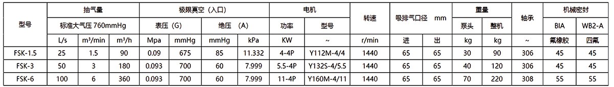 FSK系列耐腐蝕真空泵適應(yīng)于90~360m3/h的低抽氣量區(qū)間,極限真空度較低,可增加電機(jī)功率作為壓縮機(jī)使用。